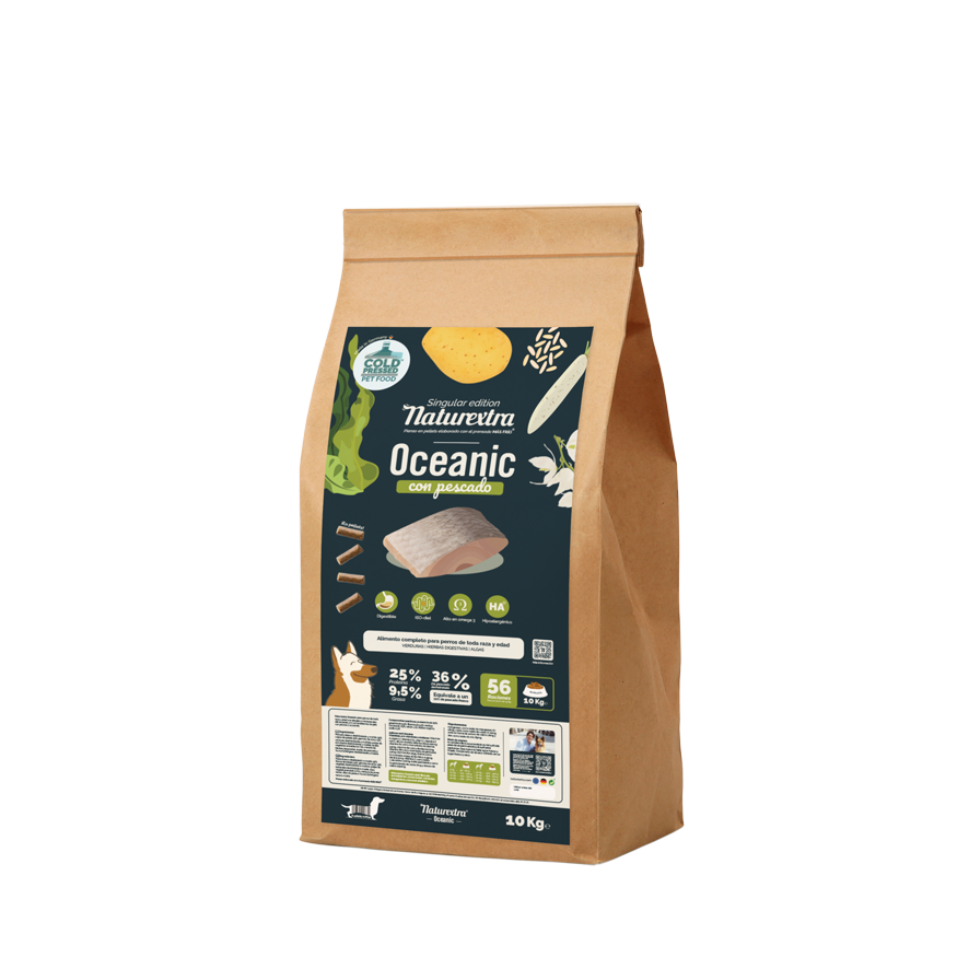 El Naturextra Oceanic MiniPellet® es un alimento completo de pescado y patata para perros que tienen alergia al resto de carnes o, simplemente, para los que les gusta el pescado.