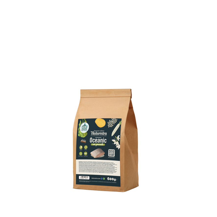 Naturextra Oceanic® está libre de: antioxidantes sintéticos como etoxiquín, BHT o BHA, conservantes químicos, colorantes y aromas artificiales, minerales de origen no orgánico como cal de forraje, bicarbonato de calcio o cal de piedras, productos manipulados genéticamente, aceites o grasas tratadas a altas temperaturas, harina, proteína o aceite de soja, harinas MER o EEB-BSE, azúcares añadidos, caramelo, productos lácteos, añadido de vitamina K3, astringentes. Tampoco contiene burbujas de aire para darle más volumen al alimento.