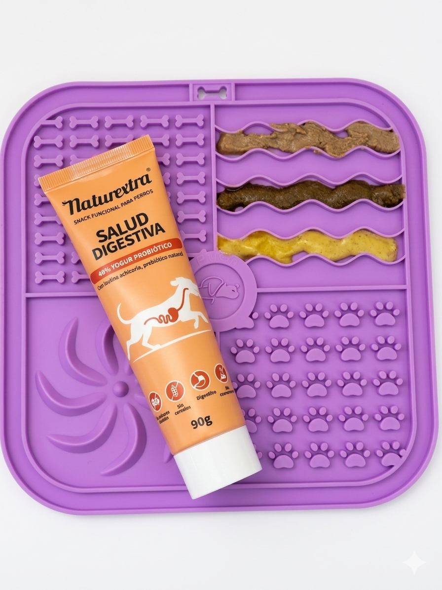 Snack funcional en formato pasta, diseñado para integrarse fácilmente en la rutina diaria. Su textura permite una dosificación precisa y versátil, adaptándose a diferentes usos como premio, enriquecimiento ambiental o complemento nutricional.