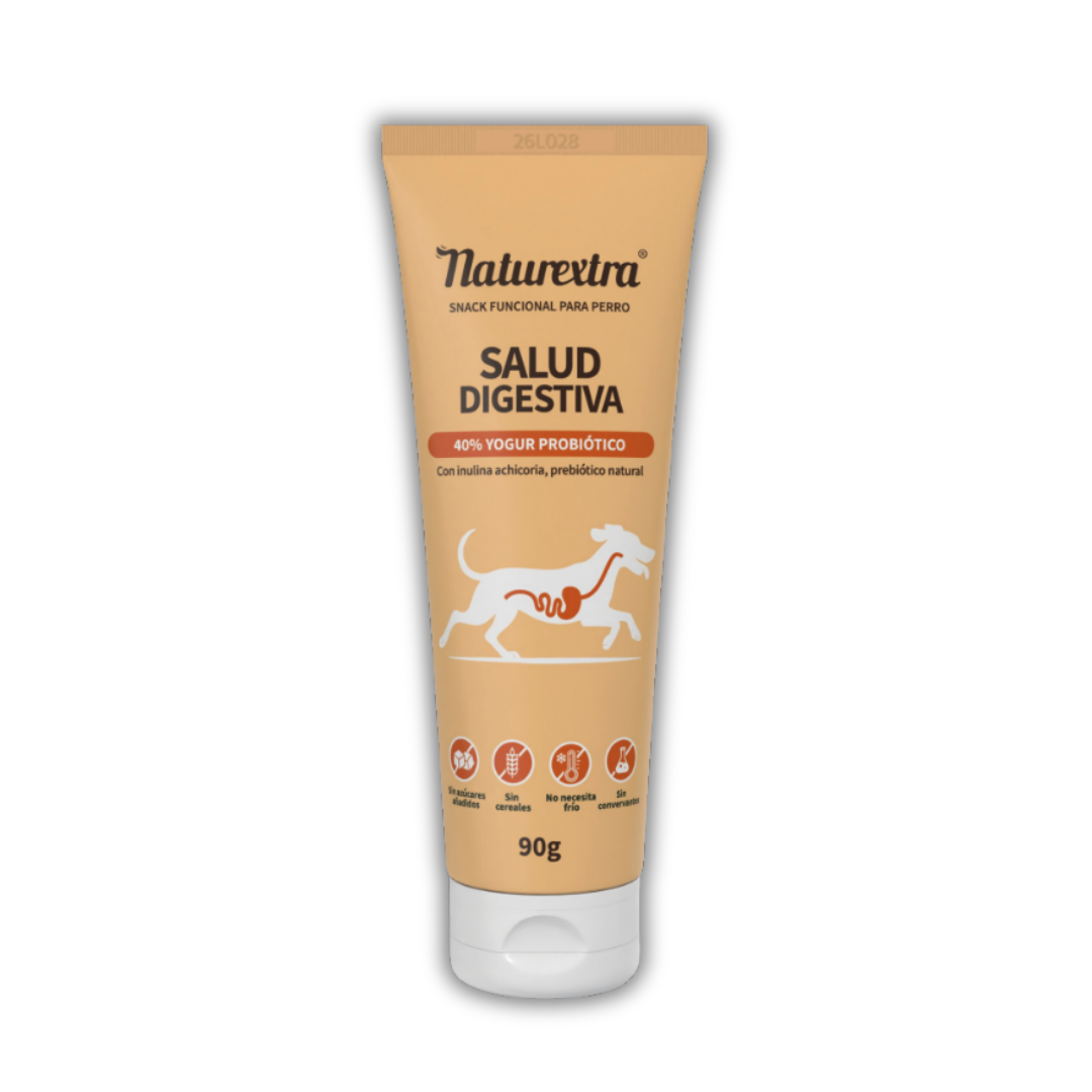 El Snack Funcional Yogur Naturextra es un complemento nutricional diseñado para favorecer la salud digestiva en perros de todas las edades. Su fórmula combina ingredientes lácteos de alta calidad con prebióticos y probióticos, ayudando a mantener el equilibrio de la microbiota intestinal y mejorando la digestión.